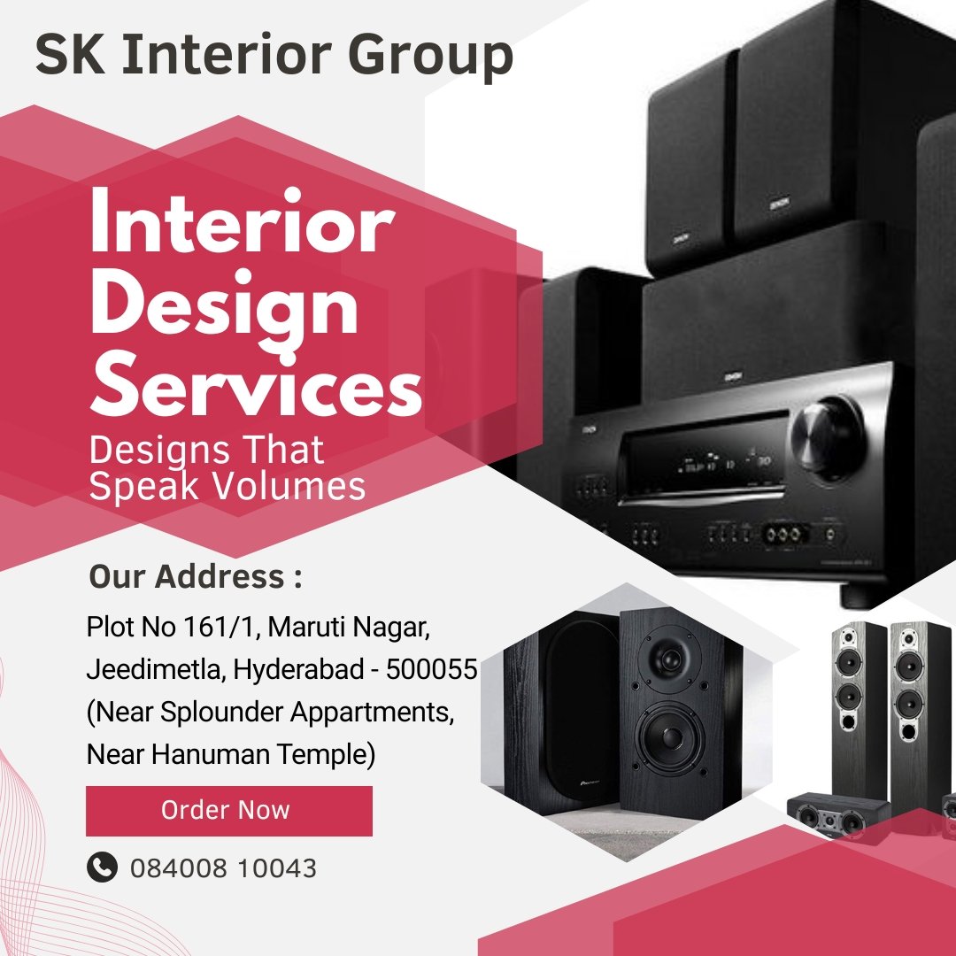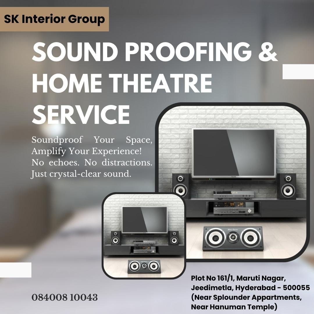 Welcome to S.K.INTERIOR GROUP, the premier Home Theatre Shop in Hyderabad, specializing in Interior Design, Theater Production, and Acoustical Consulting. Our expertly curated range of Sound Proofing and Acoustic Interior solutions will transform your space into a Recording Studio or a dream Home Theatre. Our skilled team of Interior Designers will seamlessly integrate form and function to bring your vision to life. Experience the ultimate cinematic escape with state-of-the-art Home Cinema installations. Trust our attention to detail and exceptional craftsmanship to elevate your audio-visual experience. Visit us today and unlock the potential of your space!